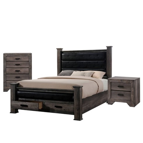 3pc Queen Grayson Storage Poster Bedroom Set Gray Oak Picket